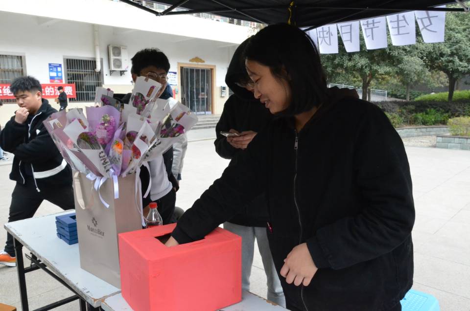 活动当天,生活部在桃园广场准备了心愿墙和鲜花,到场的女生可以领取一束鲜花并且将写有自己愿望的便签纸贴在心愿墙上,女生们纷纷在便签纸上写下自己的心愿,“希望被送一盒草莓”、“希望收到生日祝福”、“考试门门都高分”、等等五花八门的愿望,也有不少调侃学院男生的趣味心愿成为了大家的笑谈。同学们在路过心愿墙的时候都不忘驻足停留一番,或写下、或取走,也都留下一路的欢声笑语。心愿墙上各种各样的心愿成为春日桃源广场上的一道明媚的风景线。