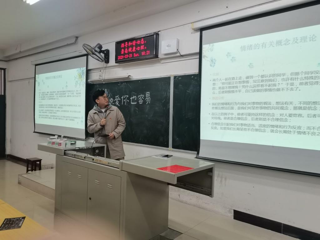 于5302和5304教室举行了主题为“情绪,想说爱你也容易”的心理团课。活动由心理部和思政部联合举办,20级全部学生参与了团课。