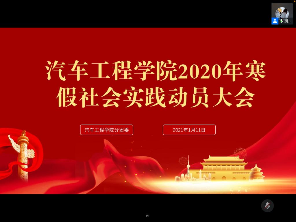 于腾讯会议开展了2020年寒假社会实践动员大会。分团委书记胡霄寒、18级寒假社会实践优秀个人胡宇迪以及20级全体学生参加了此次活动。