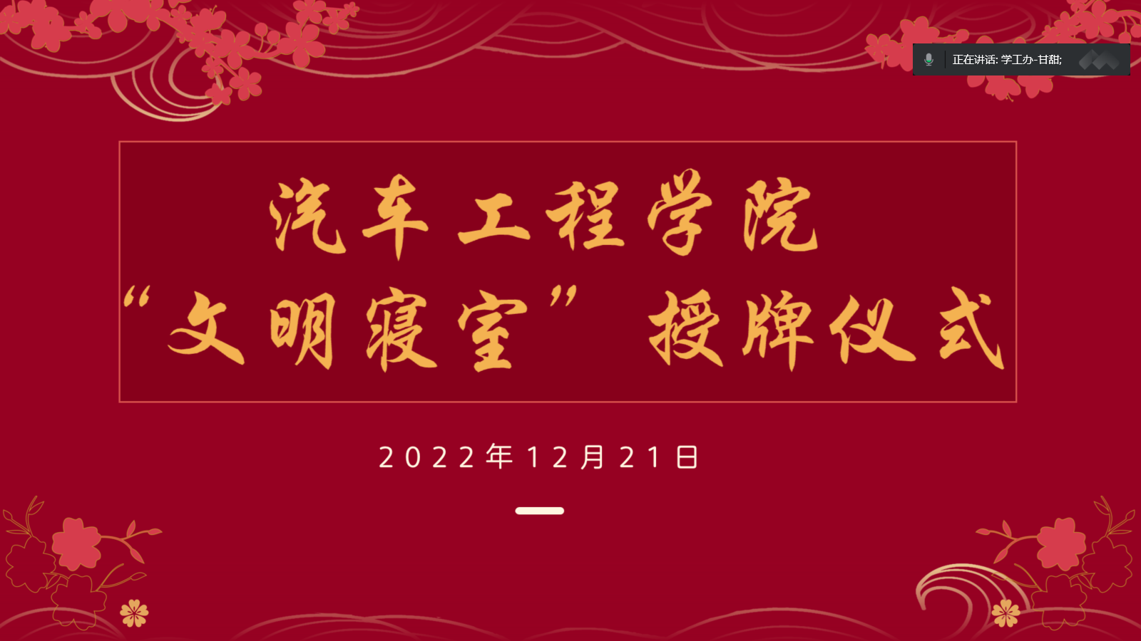 于2022年11月25日启动“文明寝室”创建活动,各年级同学积极参与。2022年12月21日晚,学院为在此次活动中表现优异的寝室举行了授牌仪式。探花精选