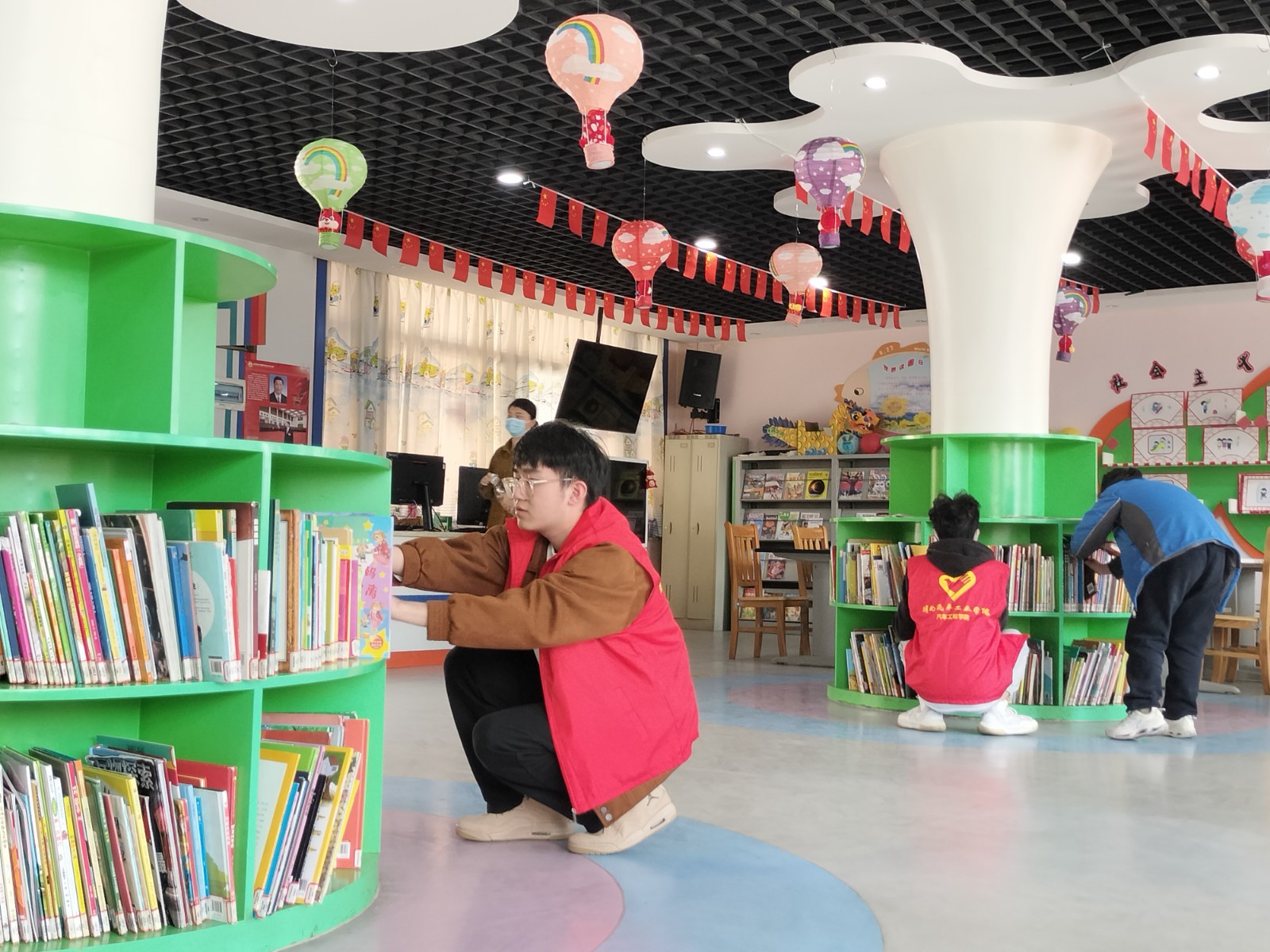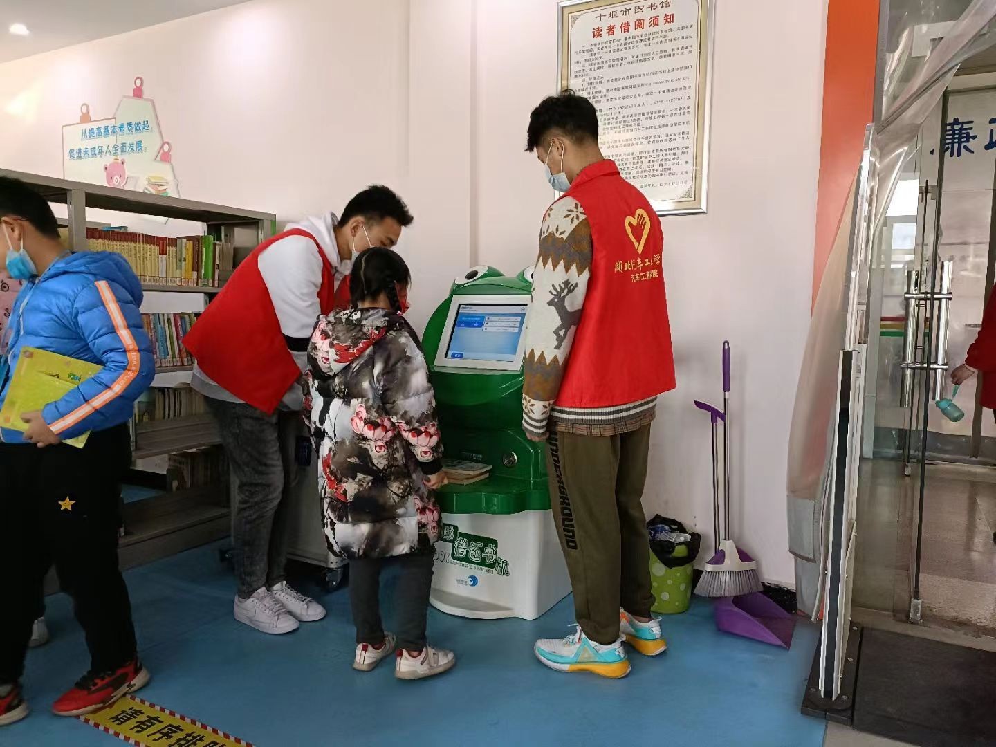 活动期间,市图书馆工作人员带领“小火柴”队员们了解工作内容并分配任务,主要内容为:负责前台借阅咨询、按照索书号进行书籍归类整理、引导读者小朋友们正确使用自动还书机。在进行了专业培训后,“小火柴”队员们立即投入到工作当中,在各自的岗位上井然有序地开展志愿服务。除此之外,“小火柴”队员们还主动与读者小朋友分享雷锋同志的名言与故事,引导大家了解雷锋精神的内涵。