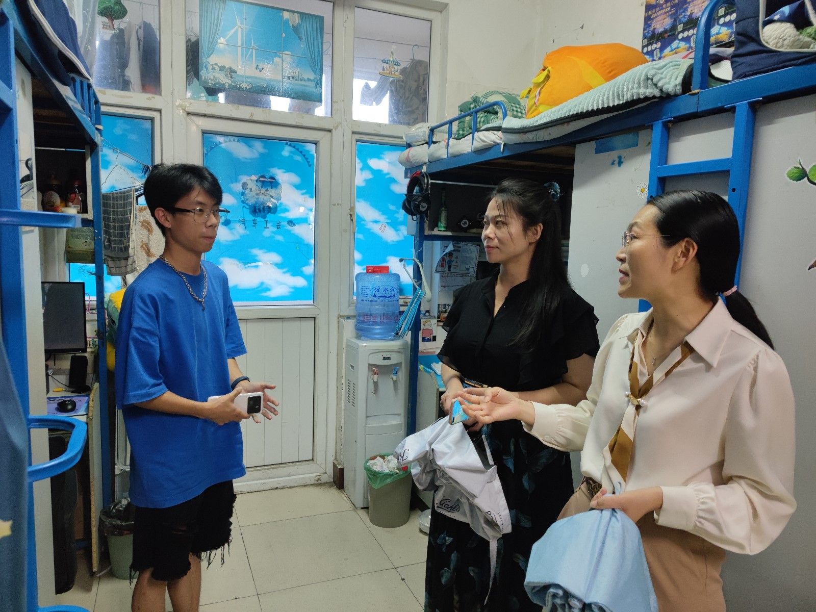 26日下午,学工部副部长杜昕俊,学院副书记周彬及辅导员李旭、甘甜等人前往李四、桃三、桃一留校学生及车队学生。每到一处,杜昕俊都叮嘱同学们,注意关注防范恶劣天气,出行注意安全,非必要不外出,并提醒同学们在努力学习的同时要注意补充营养、防暑降温。