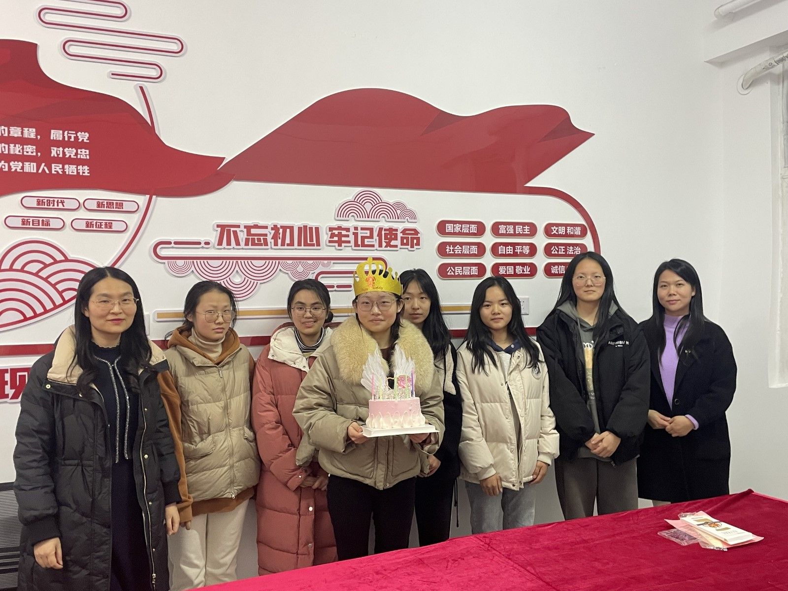 分党委副书记周彬的结对学生,她所在的205宿舍也是周彬的结对宿舍。结对大半年来,周彬时常与冯念念谈心谈话,了解生活学习中的困难,引导做好学业和职业生涯规划。2024年春节,在收到学院寄来的国家励志奖学金和评为校级“三好学生”后,冯念念第一个给老师报喜。近日,在谈话过程中得知3月6日是她的生日后,周彬当即决定为她和结对宿舍过一个集体生日,亲手为冯念念带上了生日帽,送上了生日蛋糕和亲手写的生日祝福。
