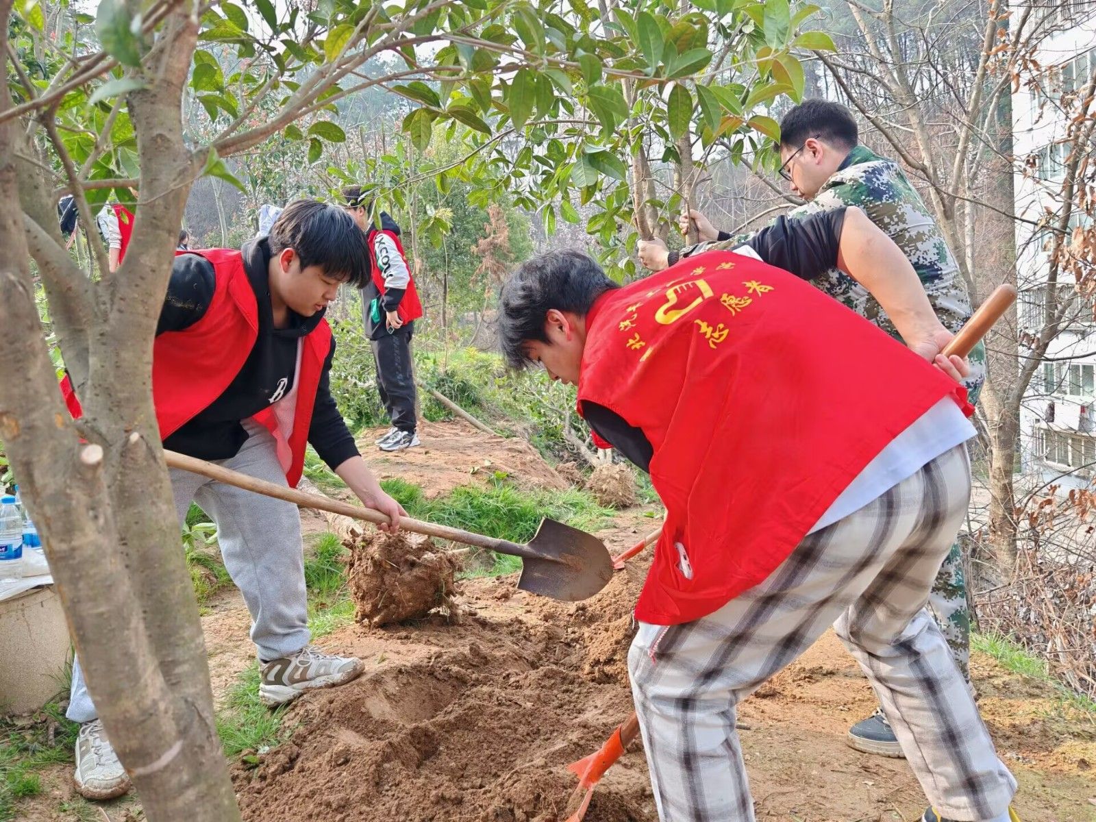 “小火柴”志愿服务队联合界牌社区开展“以树为笔,绘绿成诗”为主题的植树志愿服务活动。