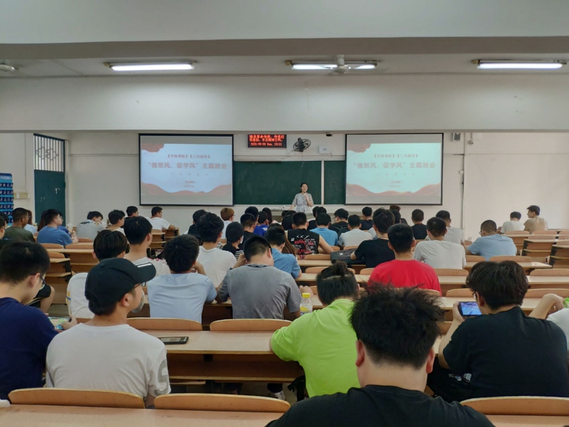 在5201、5202、5203、5204教室同时开展“强班风,促学风”主题班会,分党委副书记杜昕俊担任主讲人,19级全体学生参加了此次会议。