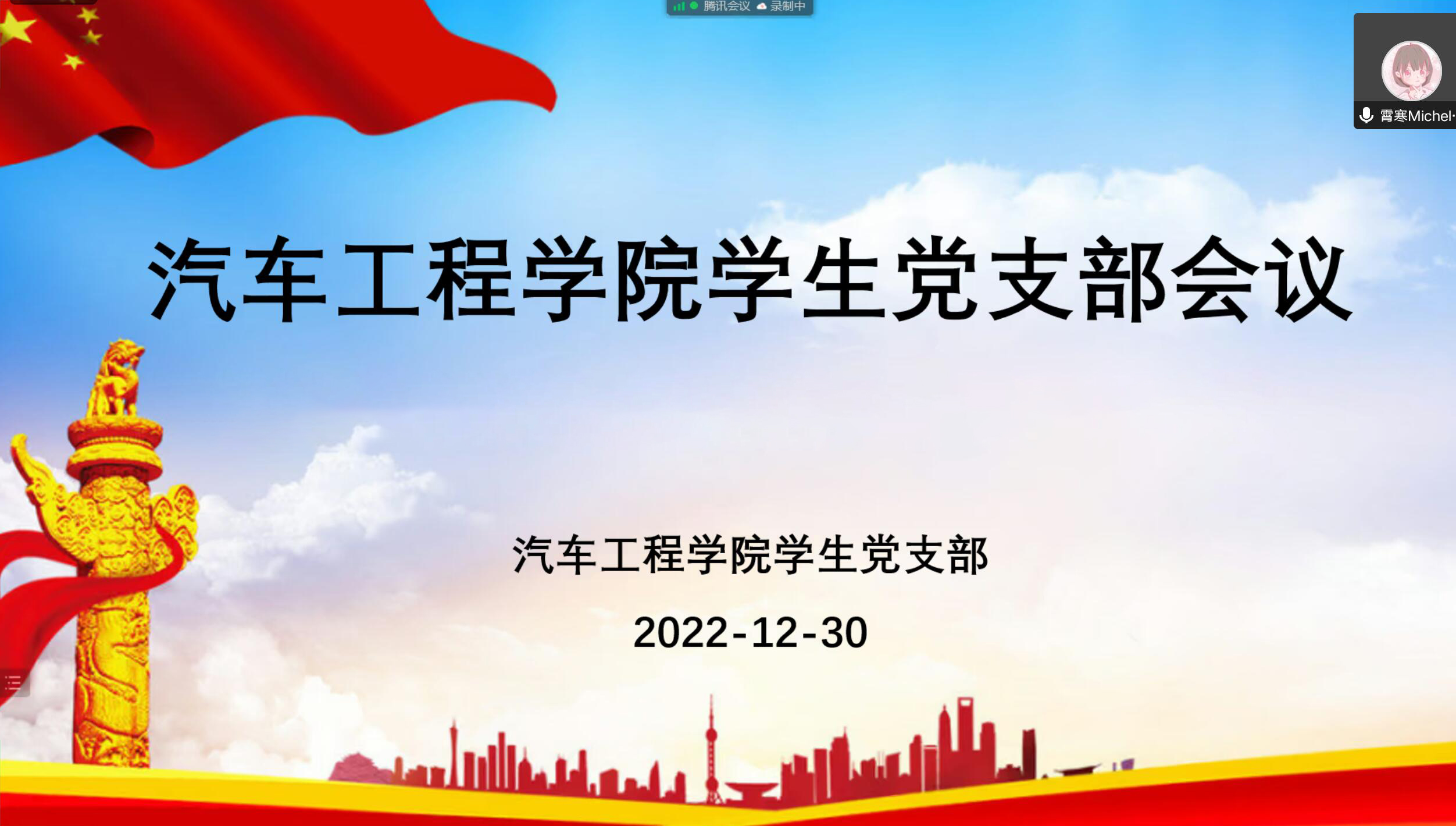 学生党支部召开了线上预备党员转正大会,以视频会议形式讨论徐忠福等5名同志的转正事宜。学生党支部书记胡霄寒主持会议。