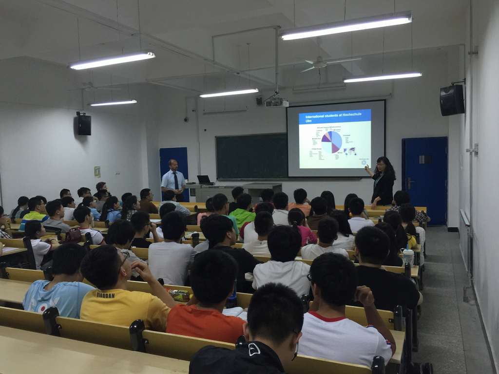 正在准备赴德学习的2012、2013、2014级学生作了专题讲座,对乌尔姆应用科技大学的地理位置、教育模式、专业设置、教学资源、科研设备和国际合作交流等作了全面介绍。在场学生也纷纷就自己感兴趣的话题用德语与Dr. Watty教授进行了沟通,为有意赴德学习的学生全面了解乌尔姆应用科技大学创造了一次良好的机会。8日,在探花精选