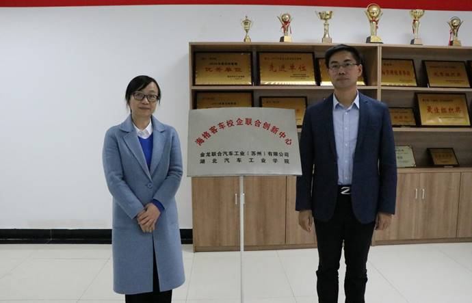 仪式上,周红妮就学校发展历史、专业概况、教学情况、人才培养特色与成效、未来发展等进行了全面介绍。金龙公司的唐英部长详细介绍了海格客车概况,并从课程体系、经典项目、人才培育模式与成长方向等方面详细介绍了海格班培养体系。随后,宋世民、冯樱分别代表企业和学校进行了校企联合创新中心的揭牌及技术服务合作签字仪式,并为入选“海格班”的12名同学赠送了工作服。为加强校企联合培养人才水平,会上还聘请金龙公司王善科主任为海格班客座教授,并由学校教务处副处长李建颁发了聘书。