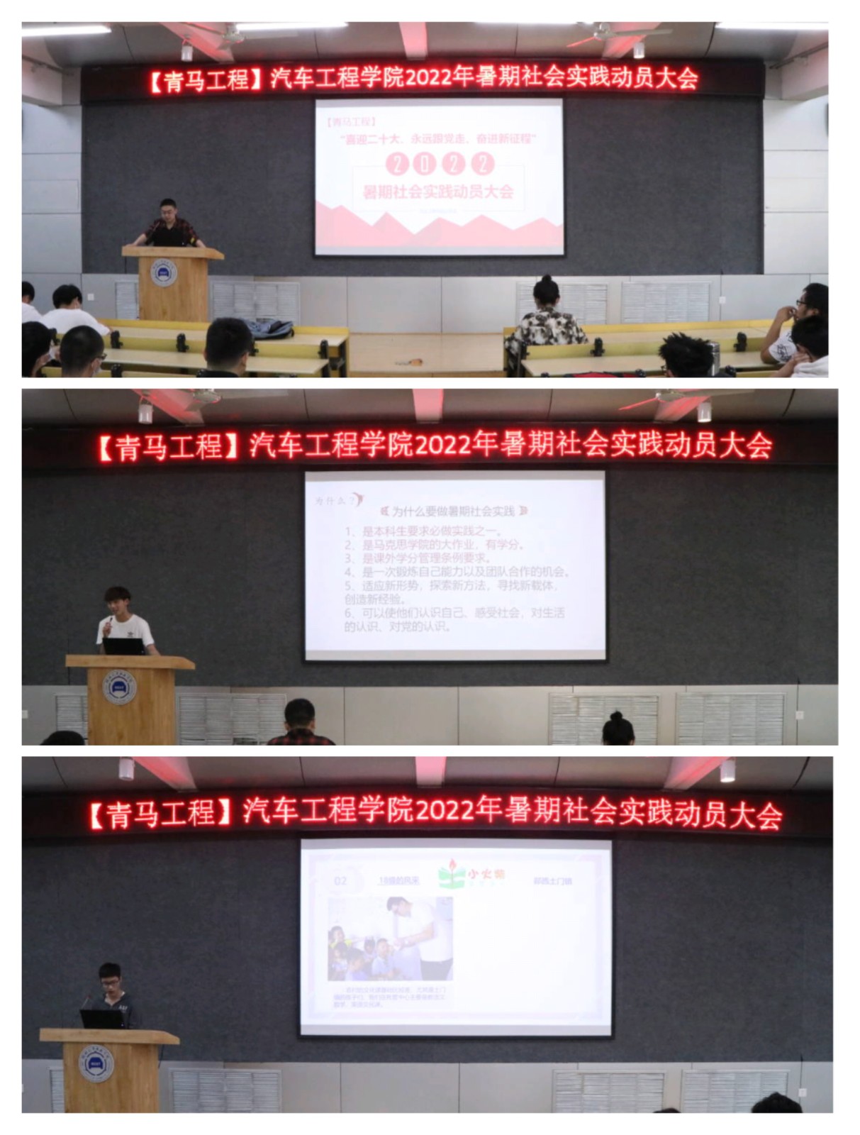 分团委于6113教室召开2022年暑期社会实践动员大会。辅导员李键雯,分团委副书记张昕宇,优秀学长车辆203班金浩东、车辆206班王子翔以及21级全体学生参加了本次大会。