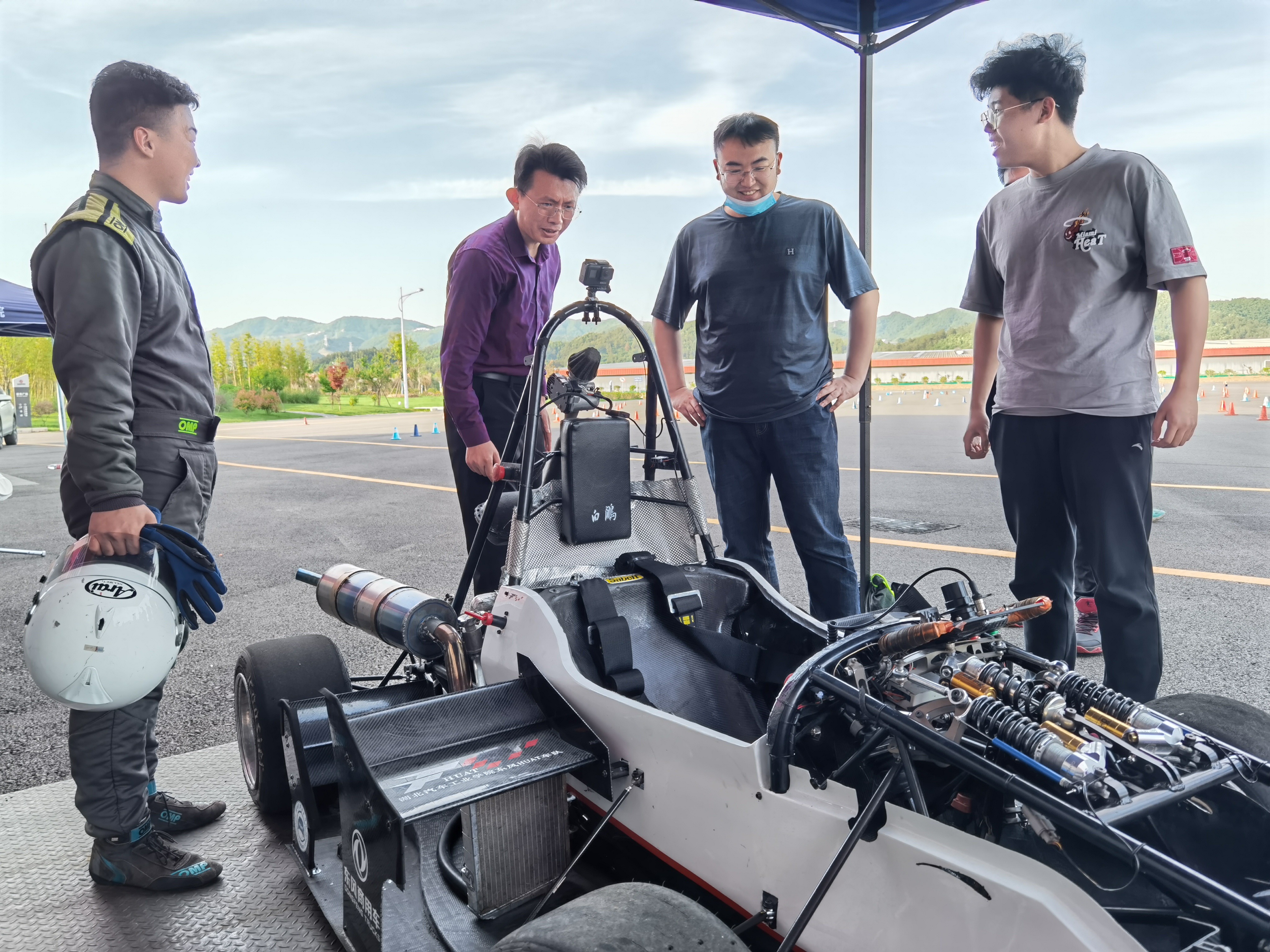 李秀峰书记和在车队指导老师金家琛等老师的陪同下前来慰问,队长杨建宇为老师们讲解了车辆目前的状态以及未来几天的任务安排,李秀峰书记与队员们进行深入交谈,对队员们吃苦耐劳的精神表示赞扬,为队员们加油鼓劲。5月4日下午,在对场地进行恢复打扫后,车队全体成员返回学校,并针对外出练车期间出现的问题进行研讨,对赛车进行保养和调整,改进相关数据,充分备赛。