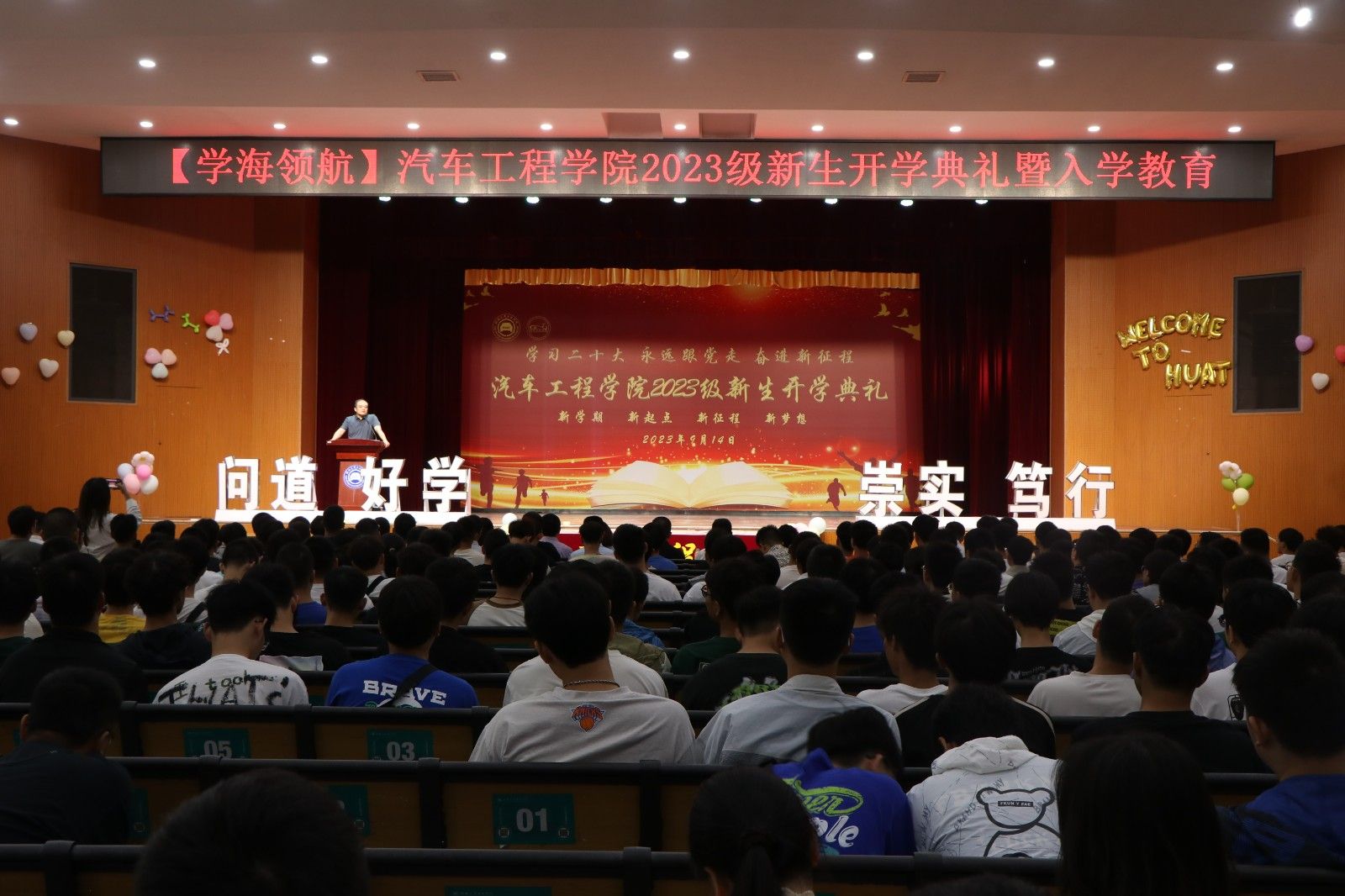 在大礼堂举行2023级新生开学典礼,近700名来自五湖四海的车院学子齐聚一堂,满怀憧憬与希望,共同开启人生新篇章。学院全体在校班子成员、系主任、本科专业负责人、新生班主任共同出席大会。分党委书记杨亚会以“心怀山海 再启新程”为题,为全体新生讲授“开学第一课”。