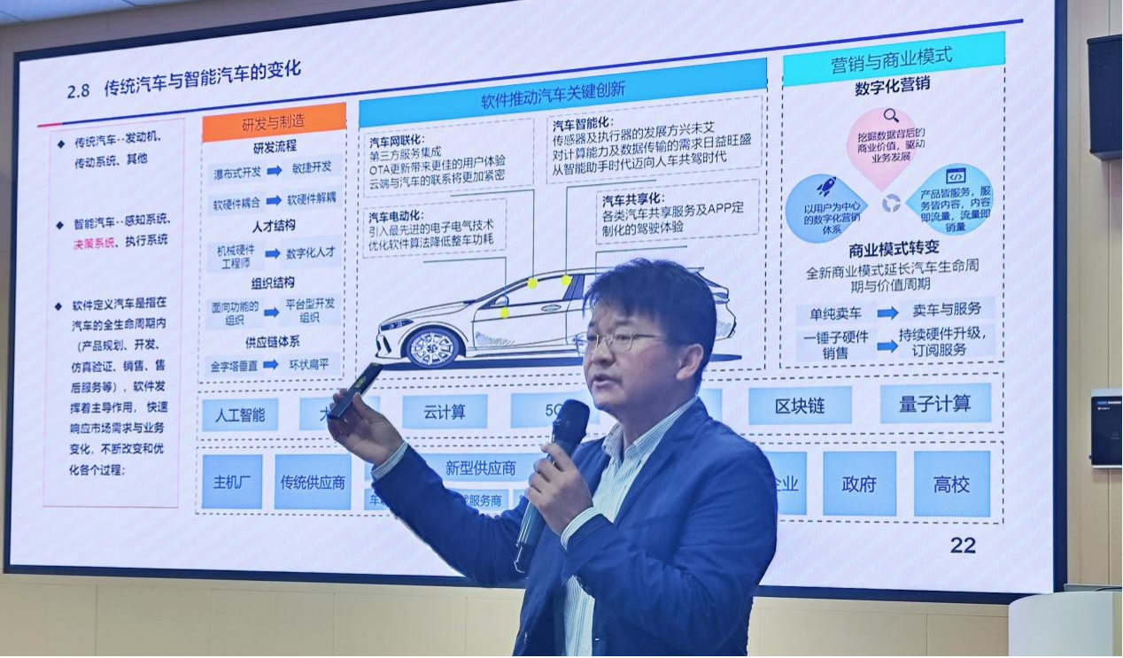 特聘教授郑国俭在综合实验楼二楼CATIA汽车仿真实验室做了主题为“智能汽车发展趋势及前沿技术”的学术报告。探花精选