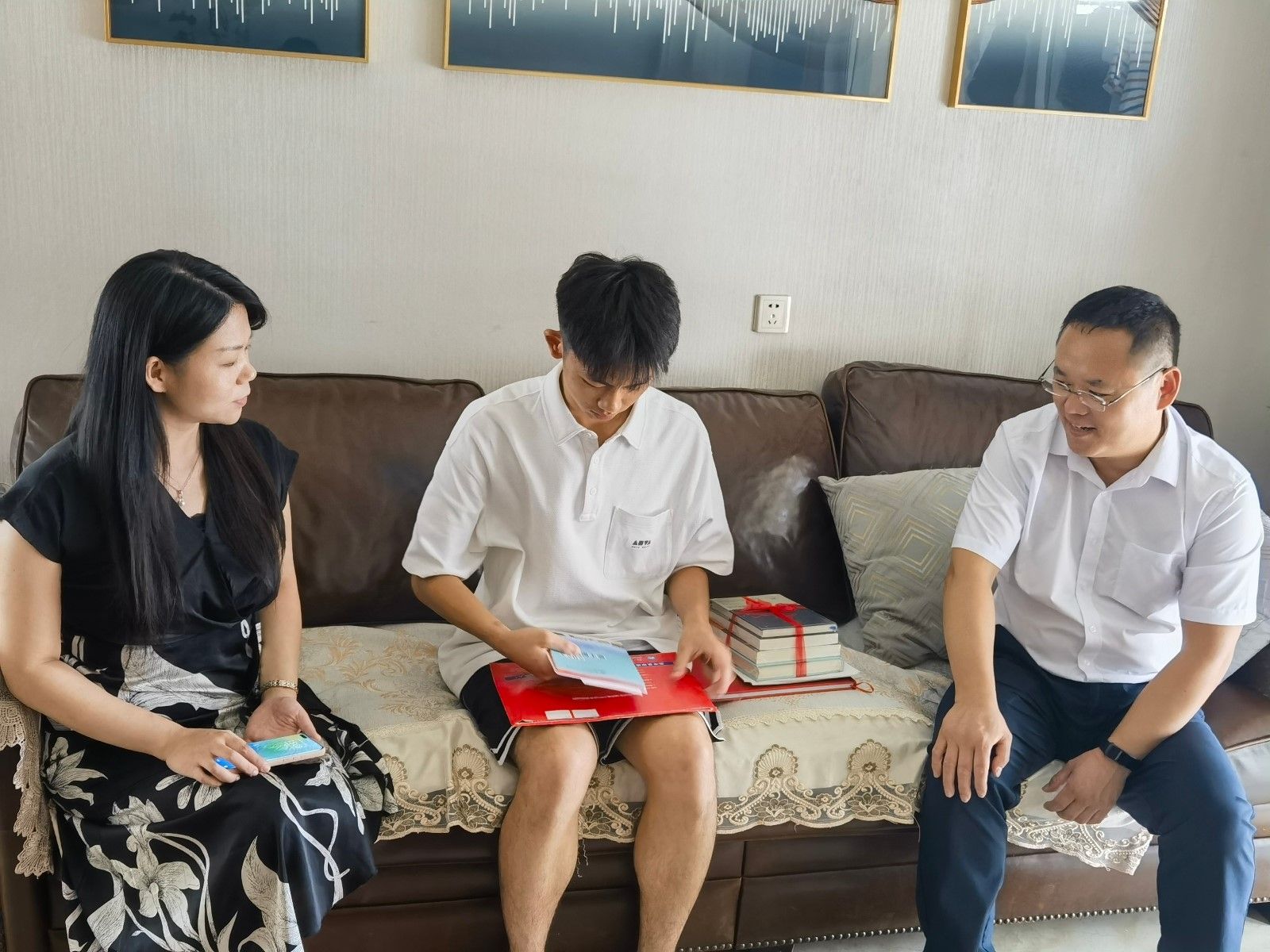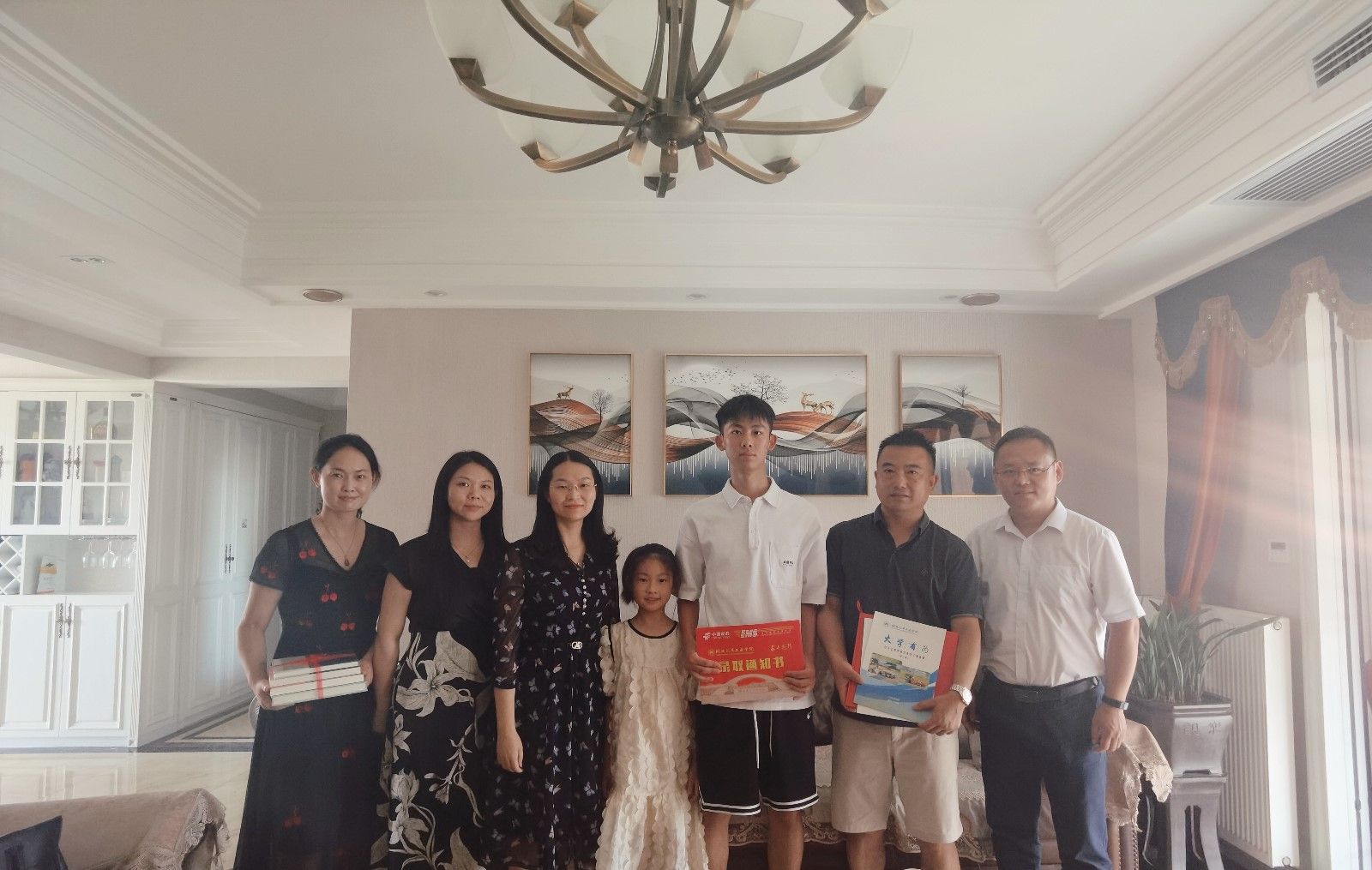 分党委副书记周彬及学院2023级新生辅导员李雅琨等一行化身“邮递员”,历时三个多小时从十堰赶到枣阳市,将录取通知书和精心准备的“大礼包”,亲手送到了探花精选