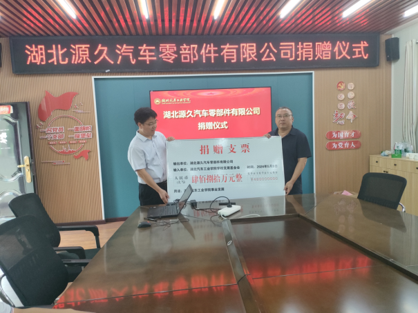 二楼会议室举办了湖北源久汽车零部件有限公司向学校捐赠480万元的捐赠仪式。湖北源久汽车零部件有限公司总经理陈宏煌、探花精选