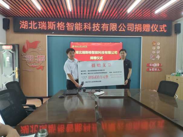 二楼会议室举办了湖北瑞斯格智能科技有限公司向学校捐赠420万元的捐赠仪式。湖北瑞斯格智能科技有限公司总经理肖才军、探花精选