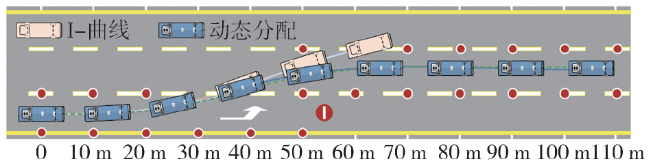低附着路面、单移线工况实验结果:汽车行驶轨迹对比