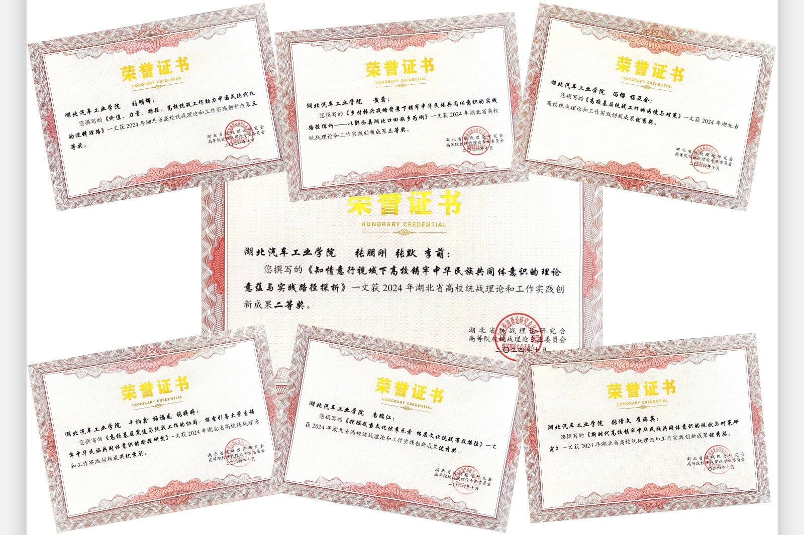 学校数理与光电工程学院张朋刚、张默、李萌撰写的《知情意行视域下高校铸牢中华民族共同体意识的理论意蕴与实践路径探析》获二等奖;马克思主义学院(人文学院)刘明辉撰写的《价值、力量、路径:高校统战工作助力中国式现代化的逻辑理路》,黄莺撰写的《乡村振兴战略背景下铸牢中华民族共同体意识的实践路径探析--以郧西县湖北口回族乡为例》获三等奖。此外,机械工程学院张倩文、崔海英,探花精选
