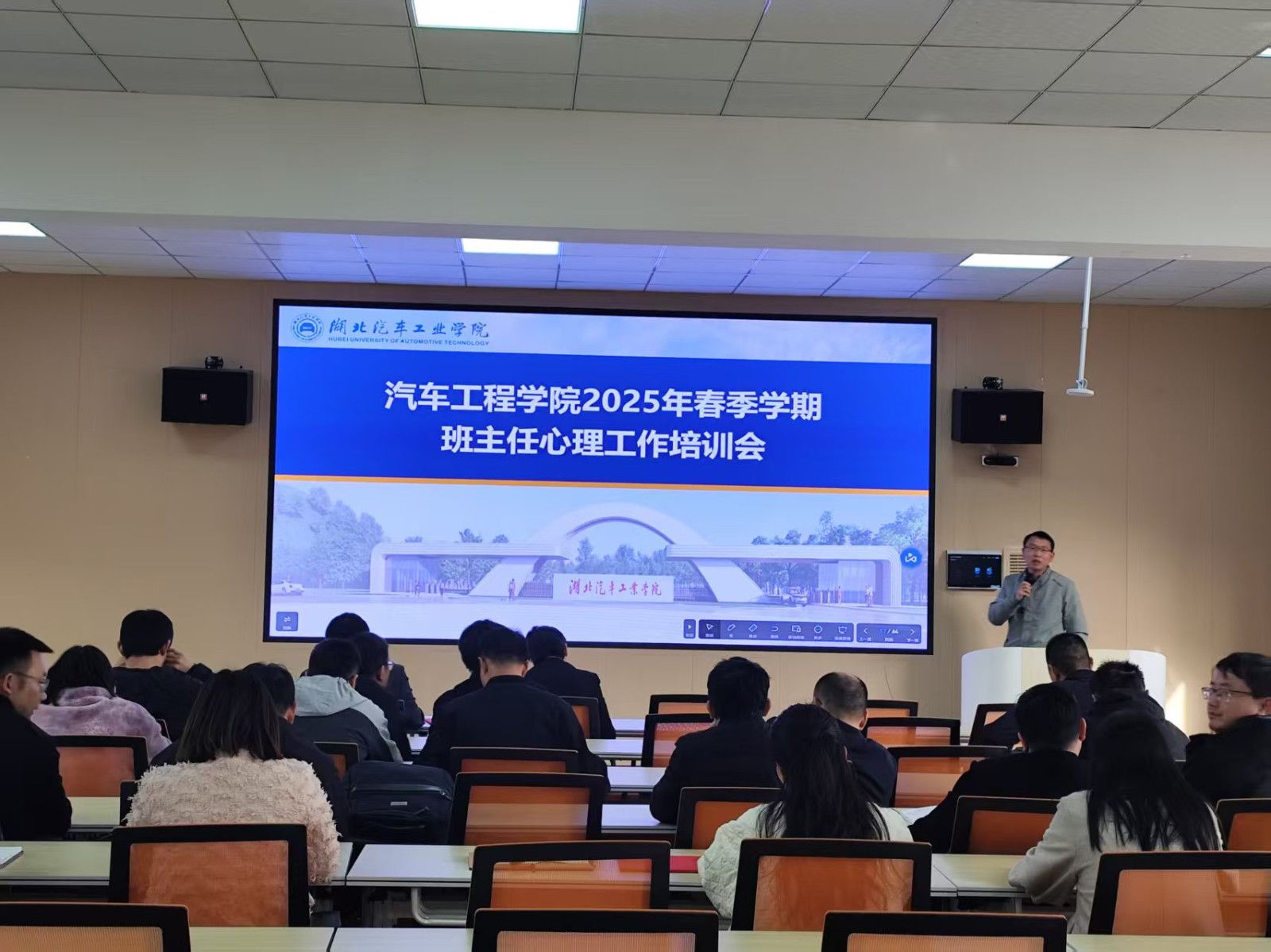 会上,学院邀请两位优秀班主任代表分享了各自的“独门秘籍”。智车242班主任张华以“班主任的温度”为主题,结合班级管理实际案例,从班干部培养、学风建设、心理关怀等方面分享了“全员参与、分层管理”的带班模式,提出了“个性化帮扶+正向激励”的管理机制。车服Z224班班主任、有着9年辅导员工作经历的“全国优秀”教师胡霄寒以“班主任工作的三个关键词:温度、挑战、行动”为主题,通过“双向奔赴”的温暖情感回应“00”后学生个性化需求,化解“躺平”“内卷”等时代考题,并用“三个工具箱”推动学生从“被动管理”转向“自主成长。”,为班主任们提供了宝贵的经验。