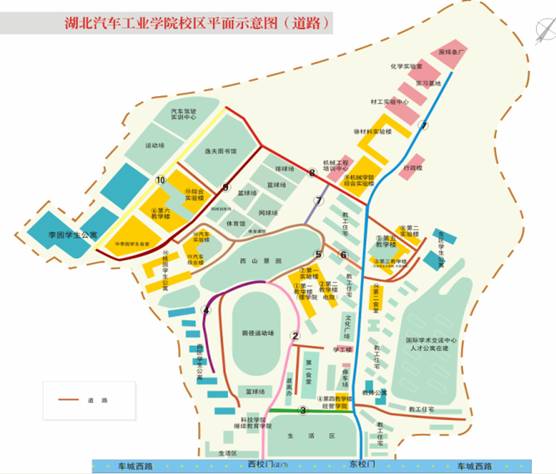 校区平面示意图及需要命名道路编号标注