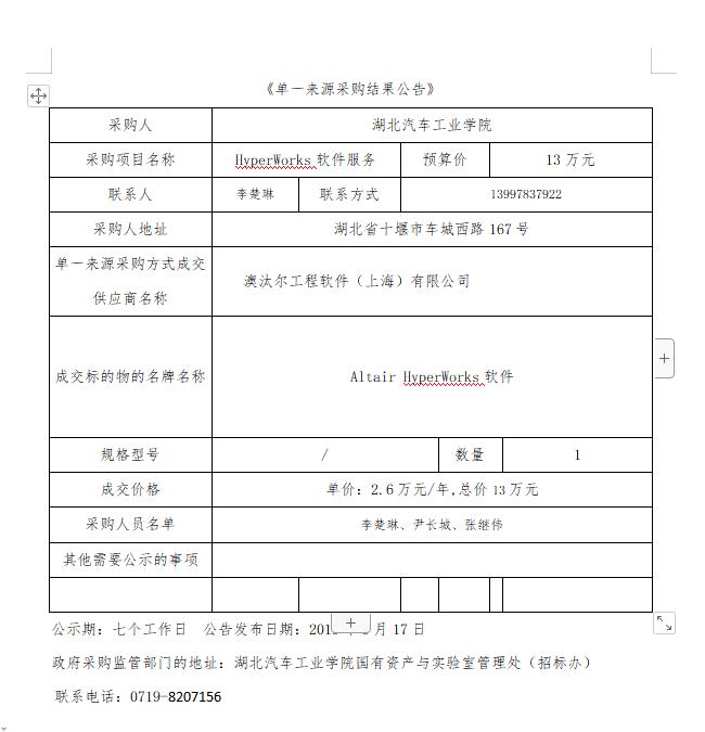 拟选择采用单一来源采购方式公告-hyperworks软件服务项目