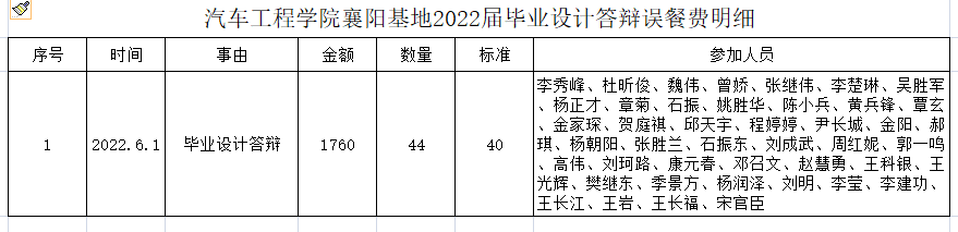 探花精选 襄阳基地2022届毕业设计答辩午餐费明细