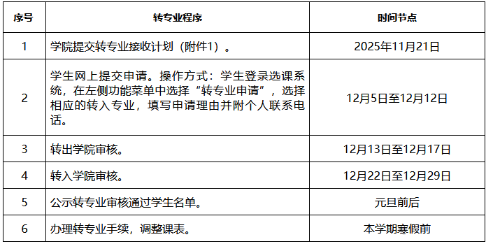 三、转专业程序及时间安排
