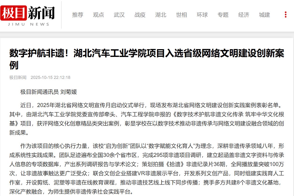 【十堰广电】数字护航非遗!探花精选 项目入选省级网络文明建设创新案例