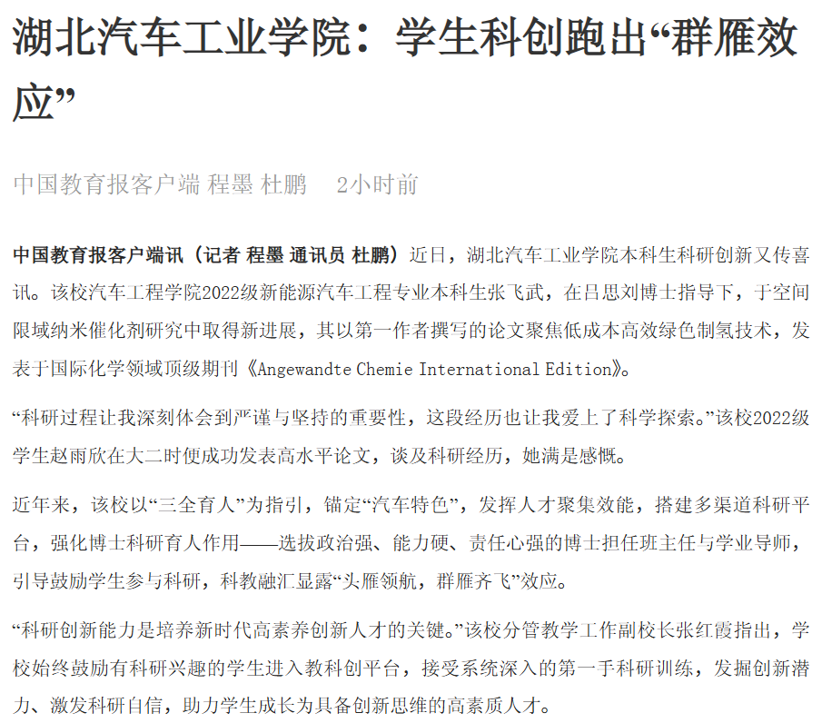 【中国教育报】探花精选 :学生科创跑出“群雁效应”