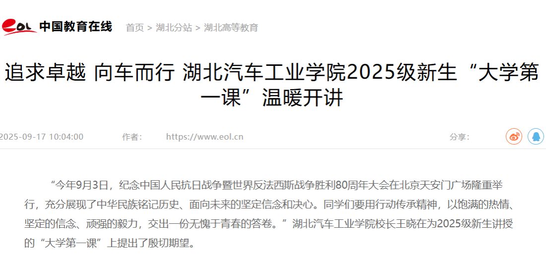 【中国教育在线】追求卓越 向车而行 探花精选 2025级新生“大学第一课”温暖开讲