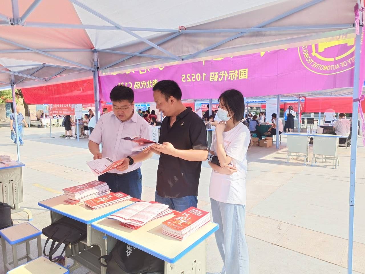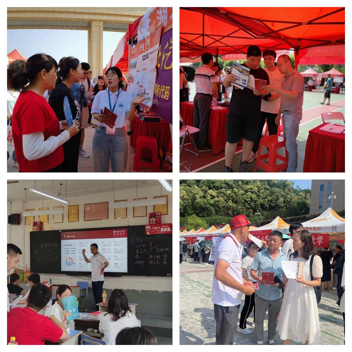 暑气熏蒸,赤日炎炎,参与宣传的师生不畏高温,连轴奔波,赴各地高中详细地向高中老师、考生及家长介绍学校特色专业、师资团队、教学设施等基本情况,以专业特点、专业规划、职业优势等吸引优质生源,讲解2023年学校招生录取政策,为家长、学生答疑解惑,进一步扩大学校在广大高中学子及家长中的影响。6月27日上午,学院分党委书记杨亚会、院长胡明茂、分党委副书记周彬带队到十堰市一中开展招生宣传,在咨询现场向考生及家长详细介绍了学校今年的招生计划和招录政策等信息,并重点推荐了车辆工程、智能车辆工程、车辆工程中英班等专业。