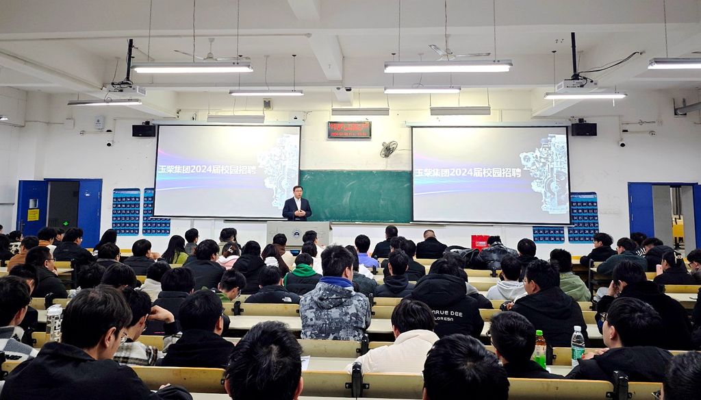 在6111教室召开2024届毕业生专场招聘宣讲会。本次宣讲会邀请到广西玉柴机器股份有限公司、广西玉柴机器专卖发展有限公司及广西华原过滤系统股份有限公司等多家企业,来自汽车、机械、材料、外语、经管、研究生院等多个学院近300名同学现场参会,宣讲会由学院分党委副书记周彬主持。