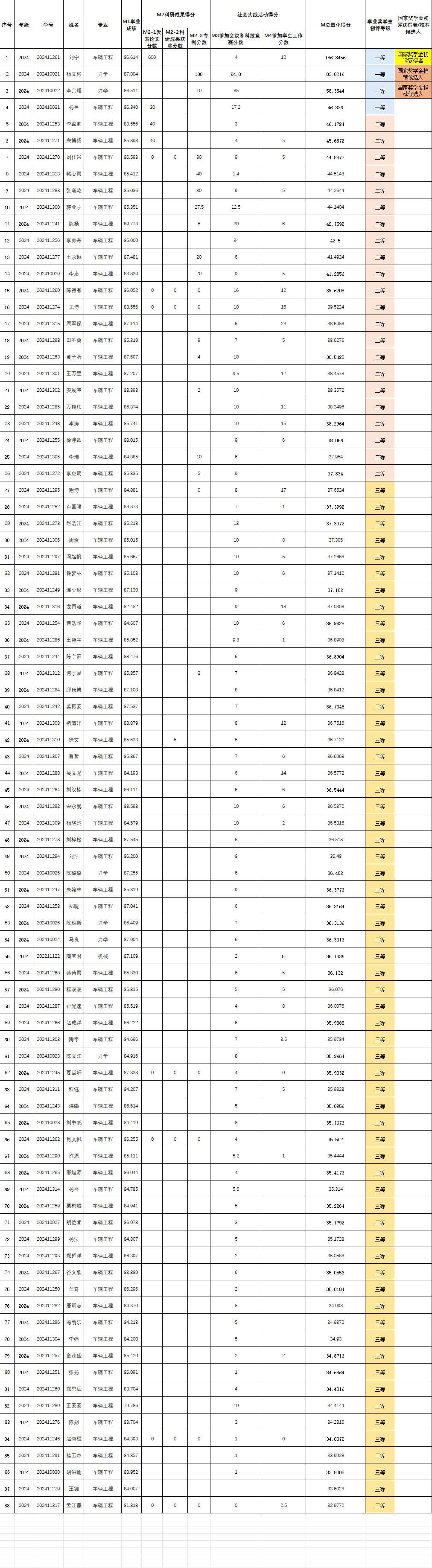 探花精选 2024-2025学年研究生学业奖学金和国家奖学金初评结果公示
